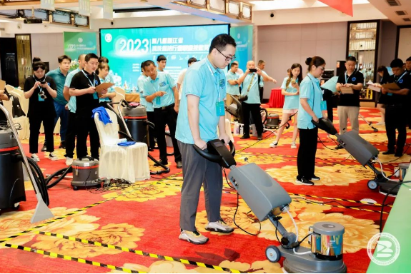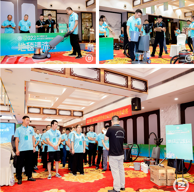 活動中,來自浙江25家清洗保潔行業(yè)單位近90名一線員工分別參加了地毯護理工種技能比賽和環(huán)境衛(wèi)生員工種的垃圾分類、衛(wèi)生間清潔、駕駛式洗地機使用三項技能比賽。